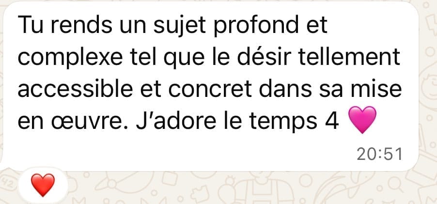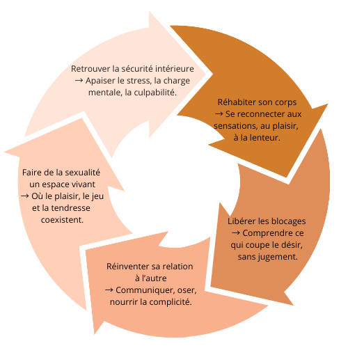 On comprend. On clarifie. On ressent. On pratique. Naturellement, le désir reprend sa place, à ton rythme.