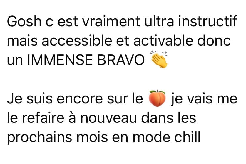 Ce n’est pas grave. Tu auras un accès illimité au programme : tu peux avancer, revenir en arrière, refaire un module plus tard.